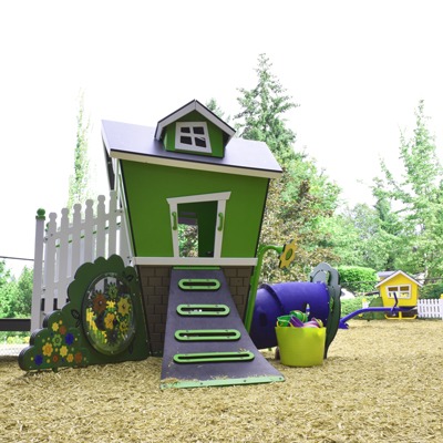 - Outdoor play and gardening projects in a fenced-in yard with a playground